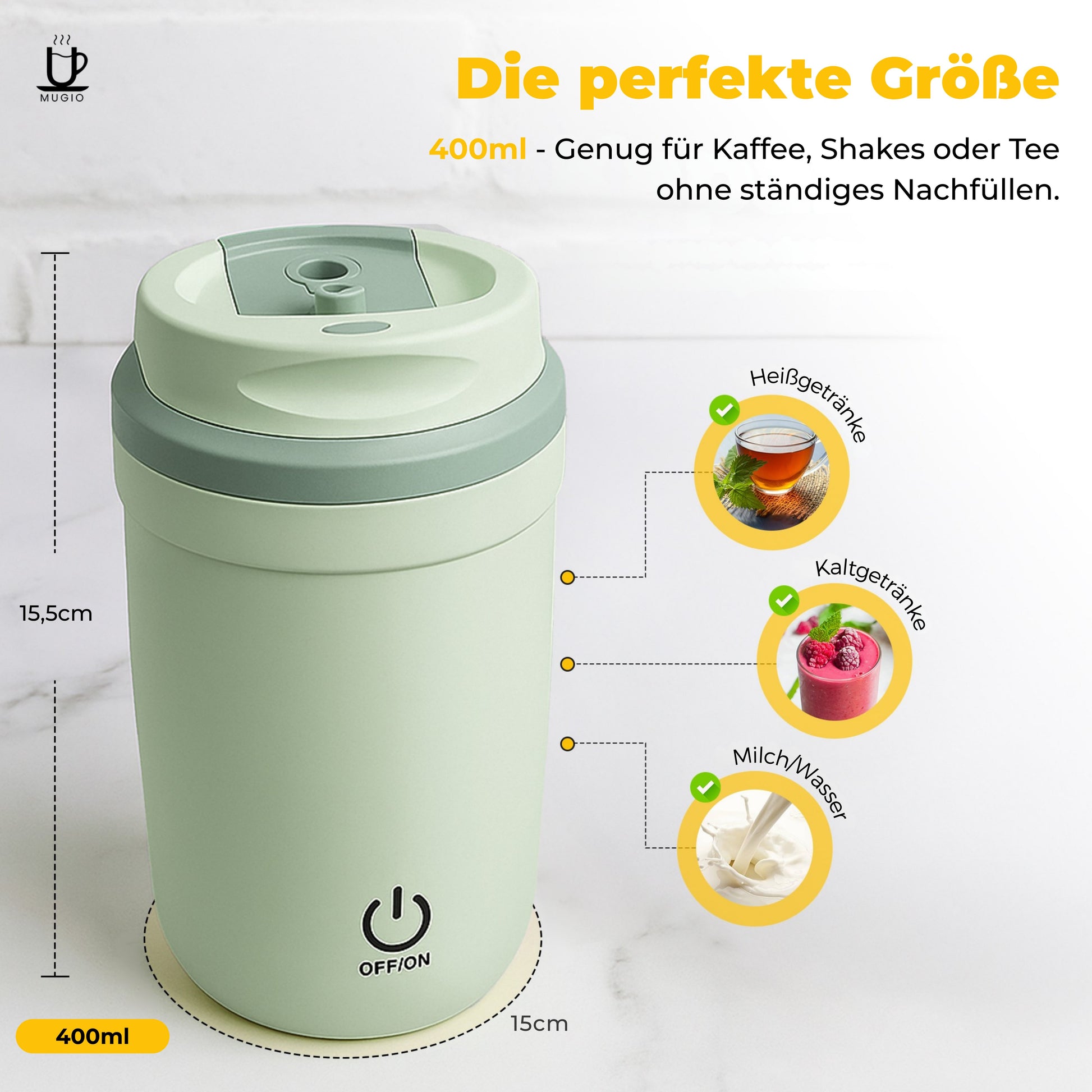 Ja – dank der abnehmbaren Basis kannst du die magnetische Rührfunktion auch unter andere flache Tassen oder Becher stellen.