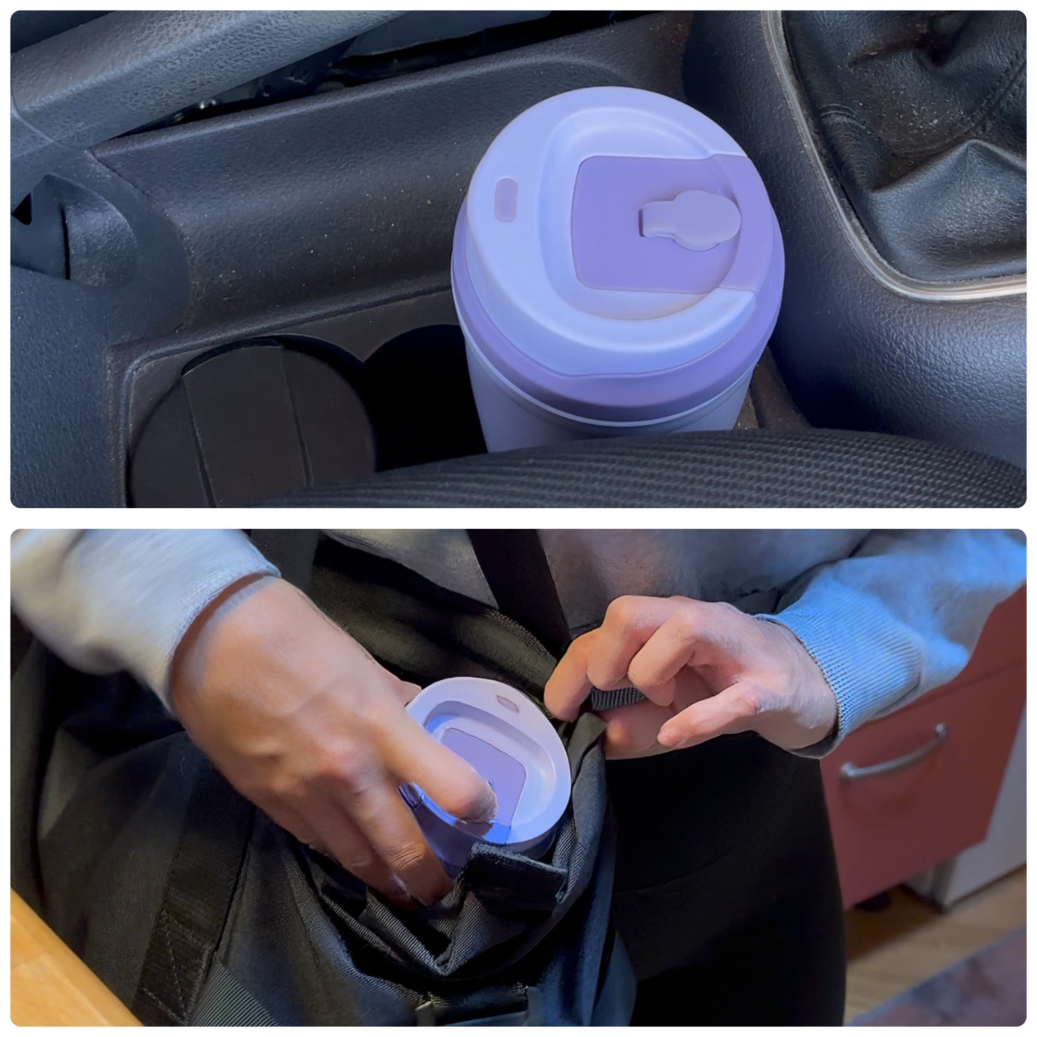 Er passt in jede Tasche und in jeden Getränkehalter im Auto.