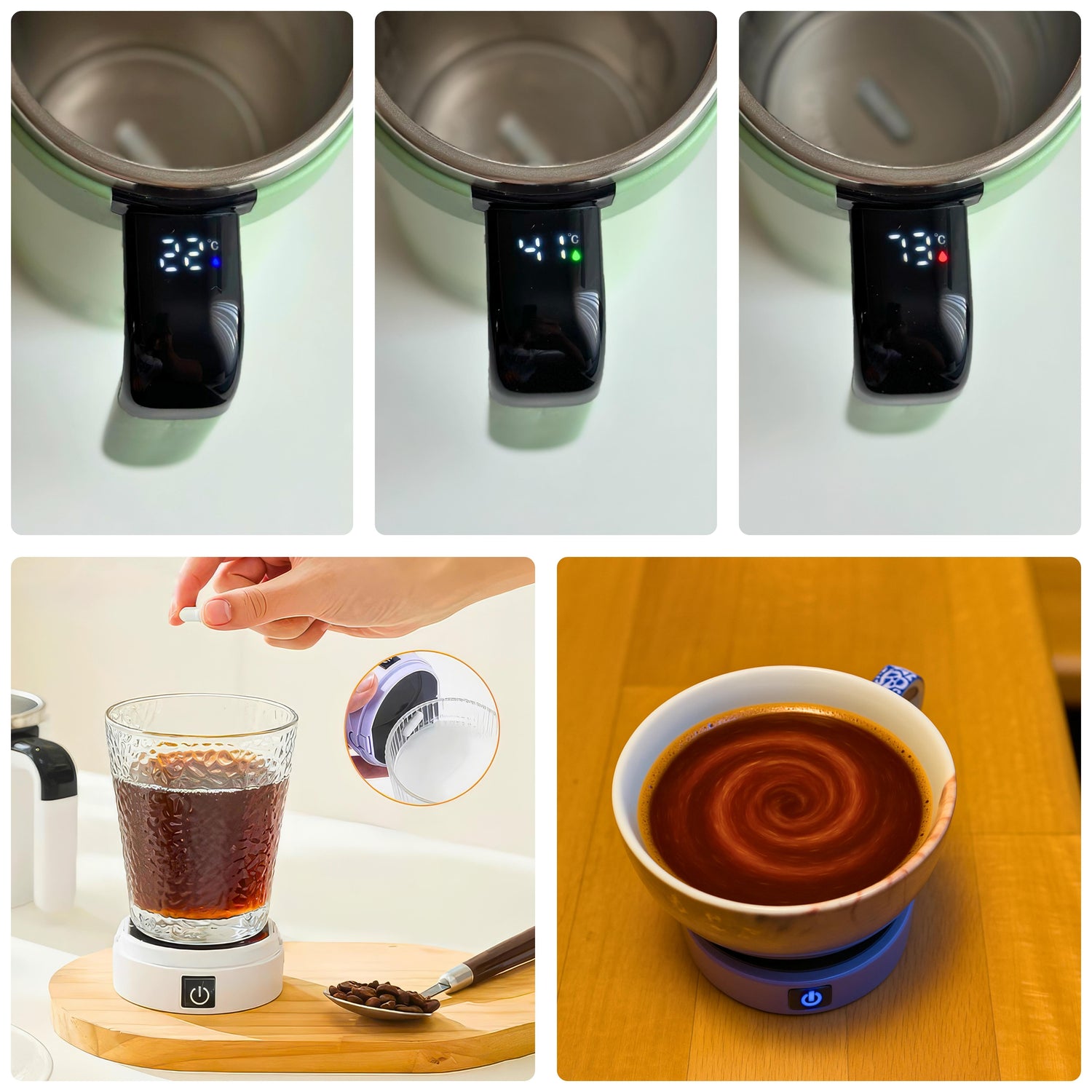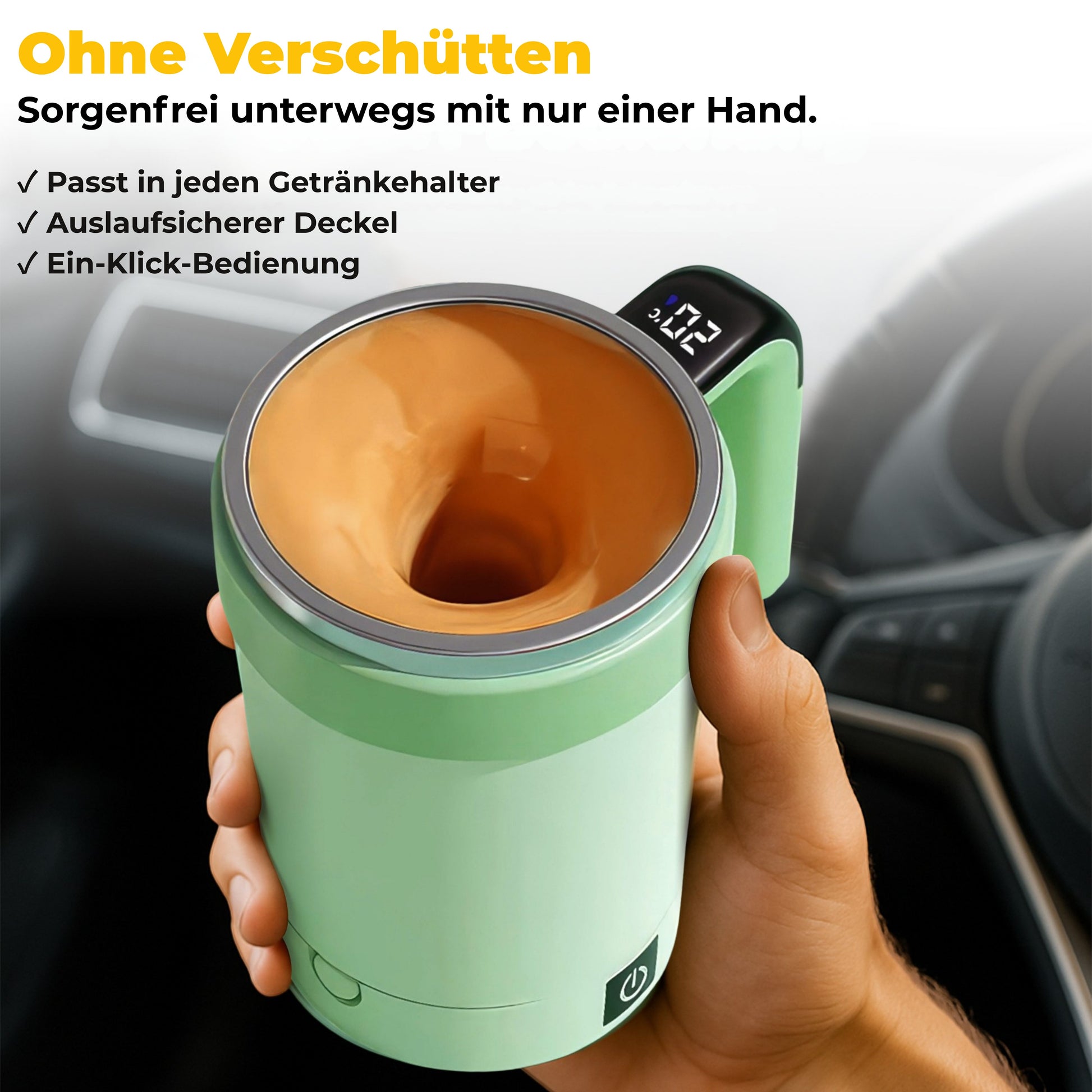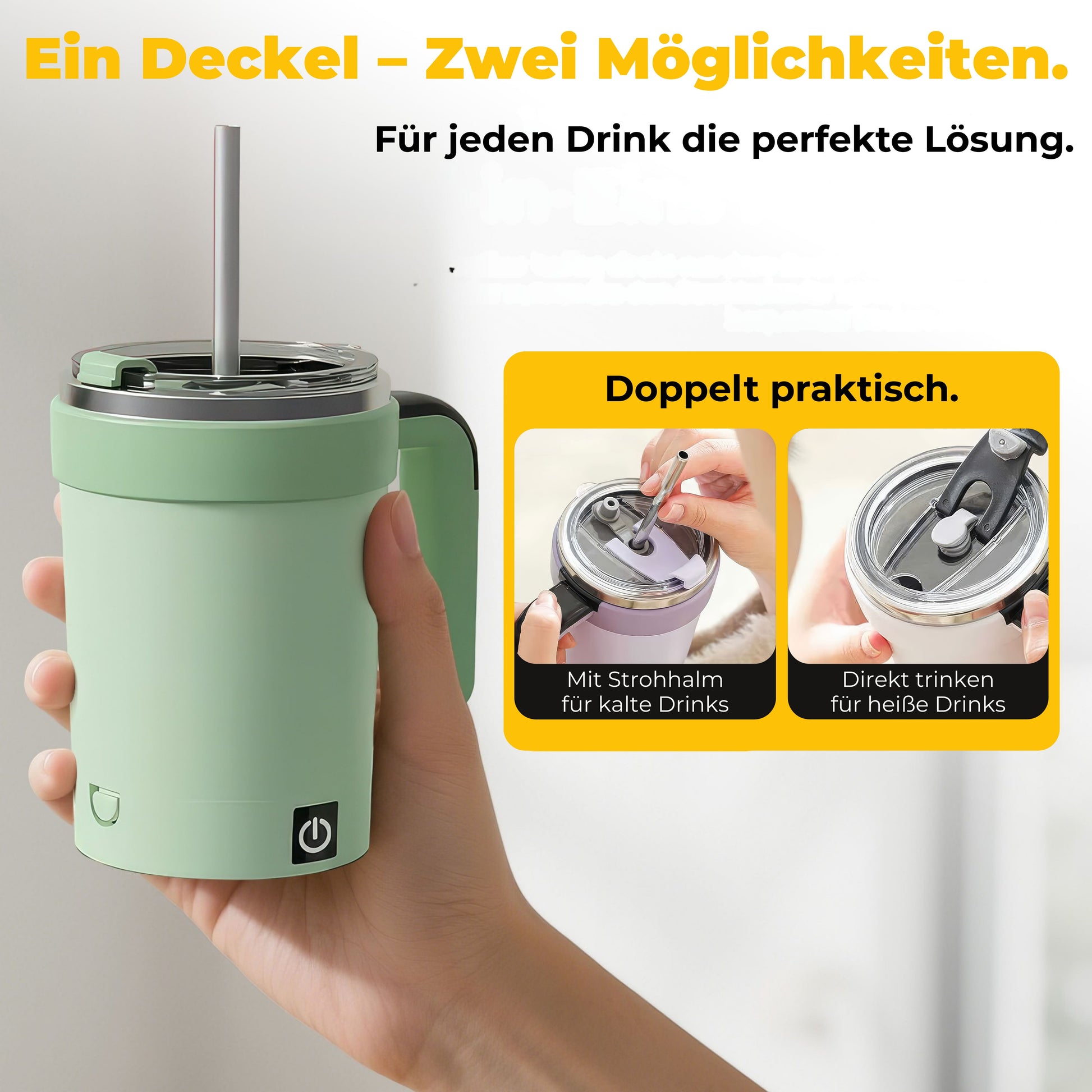 Der Becher verwendet einen magnetischen Rührkern, der durch die Basis automatisch in Bewegung gesetzt wird. Mit nur einem Knopfdruck wird dein Getränk sanft und gleichmäßig gemischt – ohne Schütteln oder Löffel.